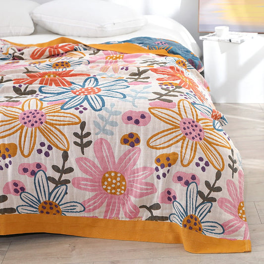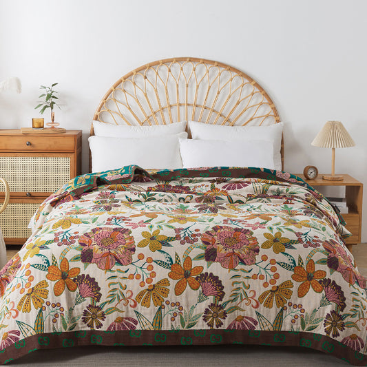 Floral Pure Cotton Multi-Layer Gauze Quilt – Lightweight Breathable Muslin Blanket for Bed & Sofa