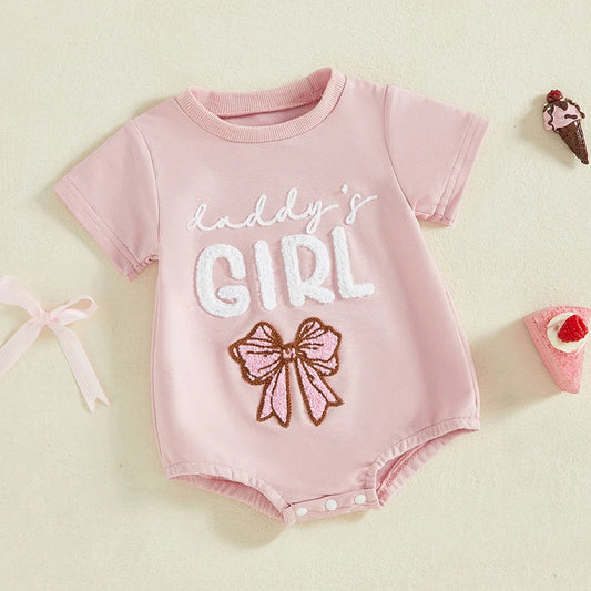 Baby Girl Romper – “Daddy’s Girl” Embroidered Short Sleeve Summer Outfit for Infants