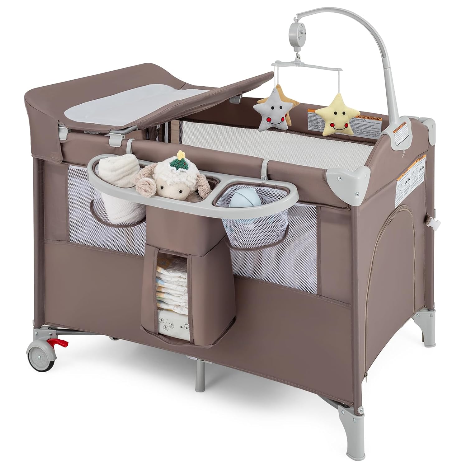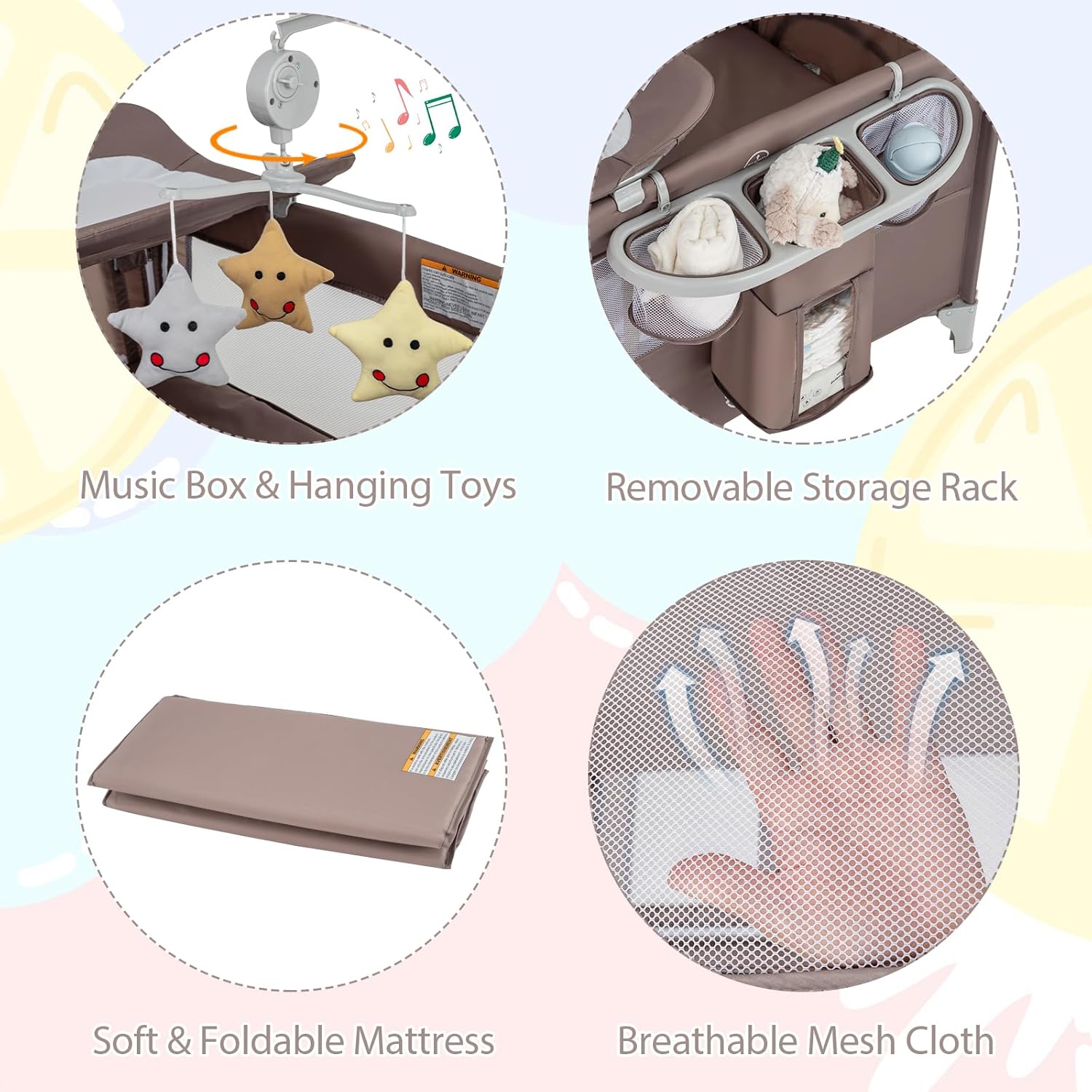 Cuna bebé portátil 5 en 1 con cambiador, moisés, correa de seguridad y entrada lateral con cremallera