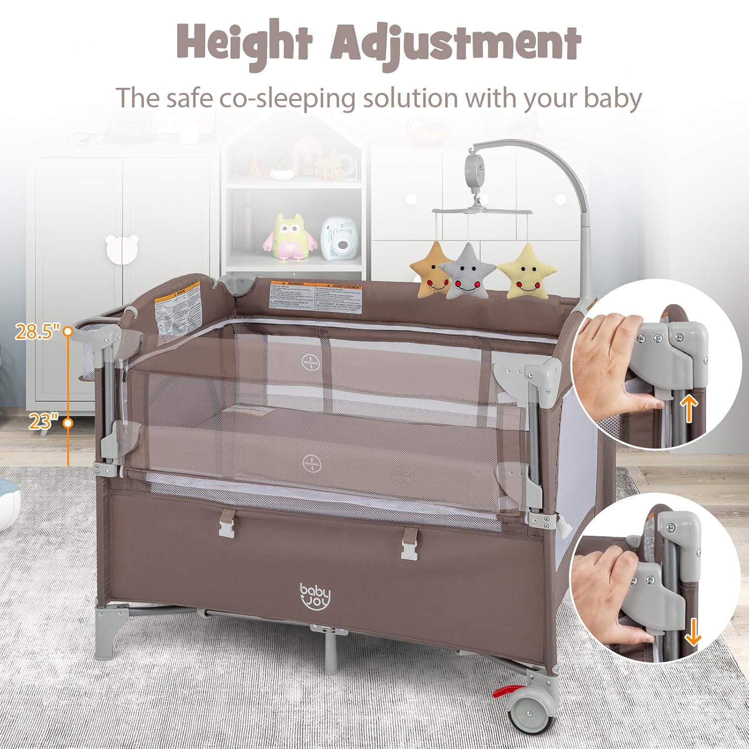 Descubre la cuna bebé portátil 5 en 1, un centro de cuidado multifuncional diseñado para acompañar a tu pequeño desde recién nacido hasta los primeros años. Este modelo combina cuna, moisés, corralito de juegos, cambiador en forma de U y cuna lateral, ofreciendo un espacio seguro y versátil para descansar, jugar y cuidar al bebé con total comodidad.