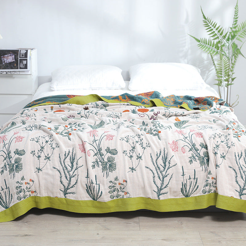 Floral Reversible Cotton Gauze Blanket – Bed Throw – Sofa Throw – Decorative Blanket – All-Season Blanket – Lightweight Blanket – Machine Washable