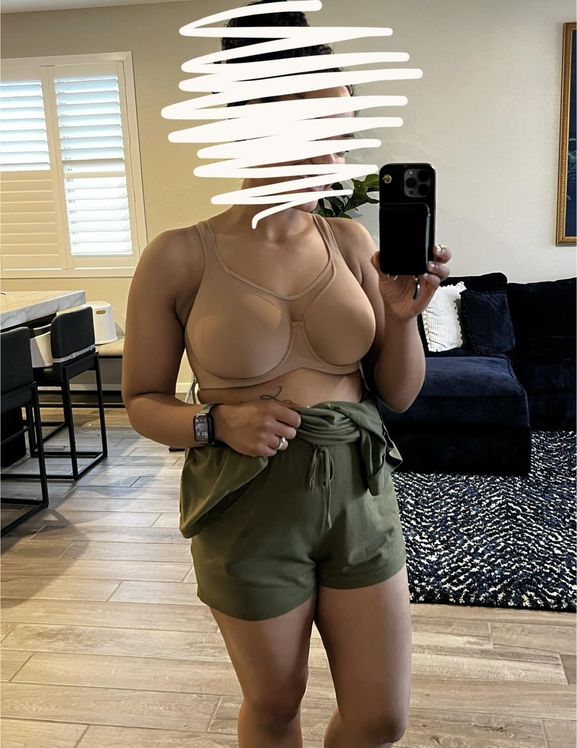 • J'adore la façon dont ce soutien-gorge lisse mon dos et me rehausse sans me serrer. Les bretelles restent en place toute la journée ! Je l'ai porté sous un haut moulant et il était invisible. Je vais certainement en acheter un autre.