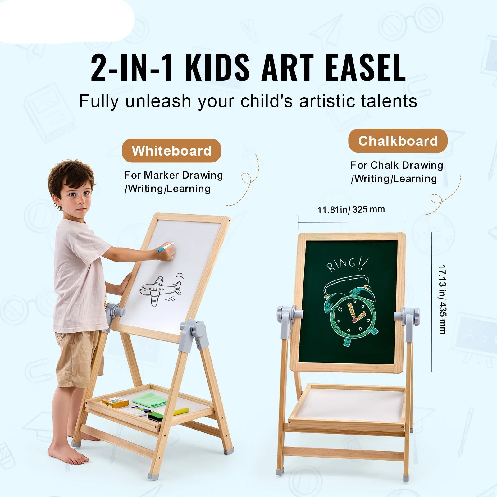 Standing Magnetic Drawing Board for Kids – Double-Sided Art Easel with Chalkboard, Whiteboard & Accessories, Adjustable Height 27–38"